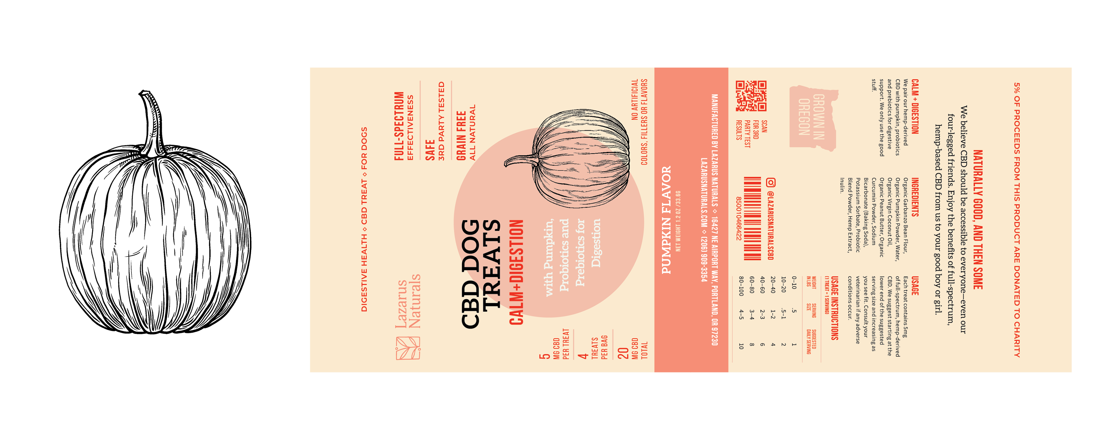 My realistically stylized pen and ink flora and fauna illustrations differentiate the products and flavors of Lazarus Naturals’ pet line.Â